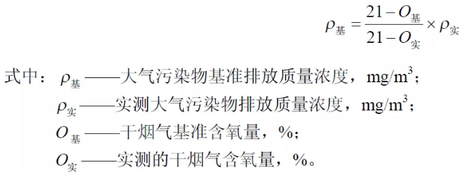 – 进入VOCs燃烧(焚烧、氧化)装置的废气需要补充空气进行燃烧、氧化反应的,排气筒中实测大气污染物排放浓度,应按公式换算为基准含氧量为3%的大气污染物基准排放浓度。